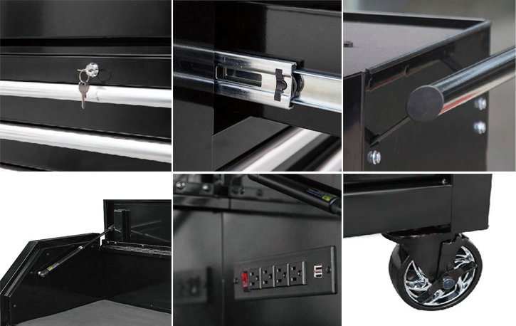 Storage Capacity: These tool chests come with multiple drawers and compartments of varying sizes. Some models feature deep drawers for larger tools and shallow ones for smaller items.
