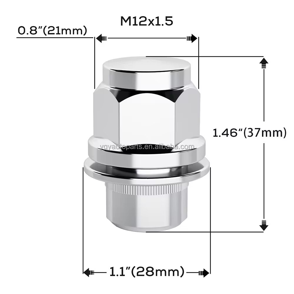 A wheel nut is a type of nut used to secure and fasten vehicle wheels. It is typically hexagonal or hexagonal in shape, with a hexagonal hole for use with a wrench or torque bar. Wheel nuts are designed to keep the wheels securely attached to the vehicle's hubs during operation, ensuring safety and stability.