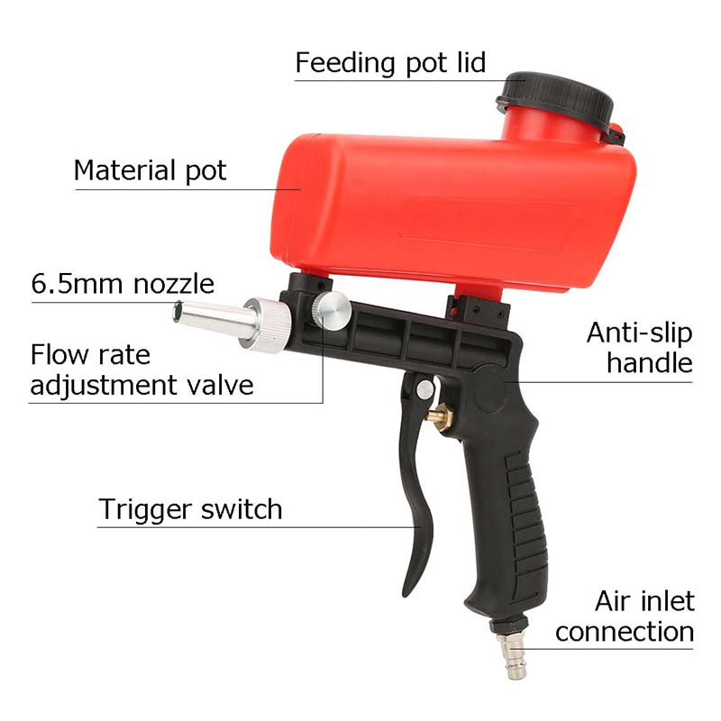 Pneumatic Sand Blasting gun has adjustable blasting flow to be used with various types of sand : such as steel sand, silicon carbide , glass bead etc. The Gun has a lightweight aluminium body making it light, portable and easy to use.