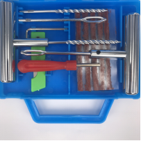 Tools you need: To fix a puncture on a tubeless tyre you need a special kit that includes pliers, a smoothening tool, puncture repair strips, puncture strip insertion tool and a knife/blade.