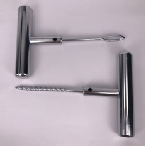 Insert the smoothening tool into the puncture hole to ensure that it is large enough to insert the puncture repair strip into. Leave the tool inside the punctured area.
