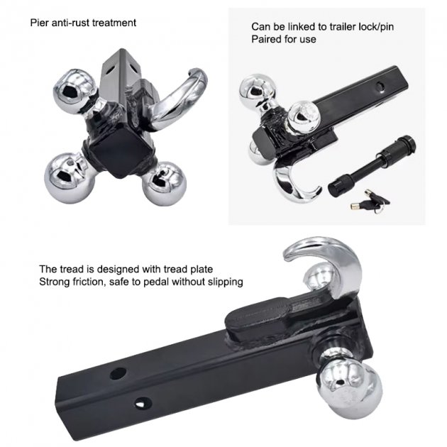 Upgrade your towing setup with this Heavy Duty Triple Ball Hitch with Tow Hook — an all-in-one solution for multiple towing needs. Designed for versatility and strength, this hitch mount features three chrome trailer balls (1-7/8”, 2”, and 2-5/16”) plus a built-in heavy-duty hook for towing chains or recovery straps.