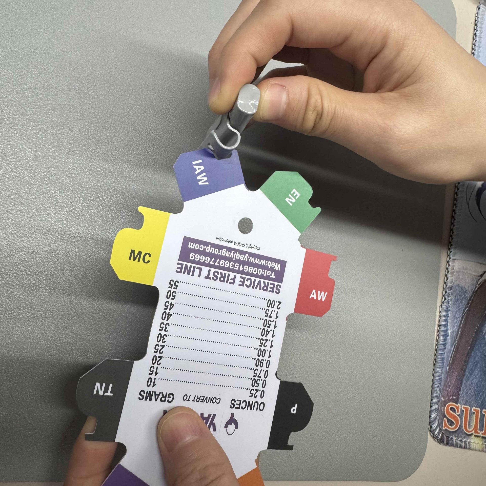 The built-in conversion chart from ounces to grams helps technicians easily verify weight equivalents when balancing tires. Made of lightweight, durable plastic, it’s a must-have tool for workshops, tire repair shops, and wheel balance service centers.